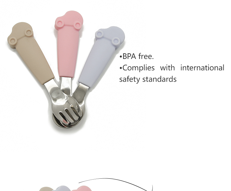 Stainless Steel Self Feeding pantone Color Baby Silicone Fork Plastic PVC Free